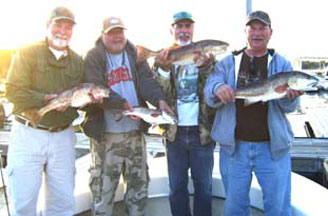 Fish deep on the cold mornings; the holes in the river are producing some nice fish. As the water warms in the early afternoon, try on the shallows just off the deeper creeks and potholes. The Rocky Creek area is producing plenty of trout as well. Redfish are holding around the creek mouths. Both are hitting a variety of baits, including slow sinking Mirrolures and also live shrimp. Sea bass are also plentiful on the rocky bottoms from 5 to 10 miles offshore.