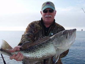 As always, February fishing is challenging. Trout are out of season for the month of February, and gag grouper season is closed from February 1 through March 31. Red grouper are closed from February 15 th to March 15 th . But there are still lots of opportunities. For the first half of the month, augment your red grouper fishing with some black sea bass filets. The spawning aggregations are plentiful, they're available in shallower water than gags, and some people would much rather eat them than grouper. All of our offshore guides can provide you with plenty of fish filets. Inshore, croaker and black drum are found fishing rocky holes in the river. Redfish will be plentiful, with their locations dependent on the water temperatures. Look for schools on the flats during warm spells, and remember that redfish are more cold-resistant than trout. Captain Thompson caught a large redfish on a topwater this month with water temperatures in the high 40's.