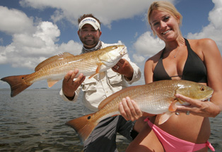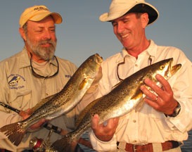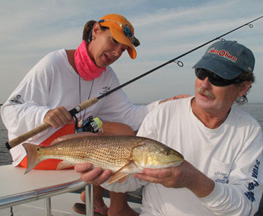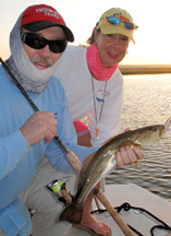 As you can see from these photos, September fishing at Steinhatchee was great! We had some cooler water the first of the month and the big redfish started schooling. Van Hubbard and Merry Beth Ryan came up from Charlotte Harbor for a few days and we had a blast chasing big schools of reds in very shallow (less than a foot) water. I did the same on a fun trip with Capt. Scott Peters and his wife, Jamie, a week later. Of course, Rick and Doug and I put lots of our spare time in and did pretty well with some nice trout, which are starting to show up in great numbers. October is the perfect time to fish artificial lures, particularly topwater plugs.